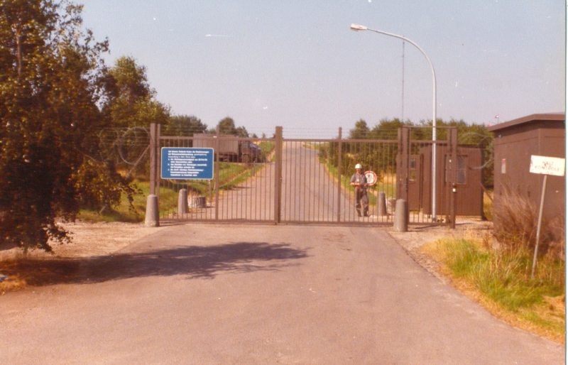 De toegangspoort van het voormalig 502 Squadron nabij Hoysinghausen, Gemeinde Uchte.